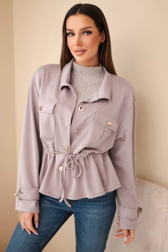 Rozpinana bluza damska o maślanej miękkości w kolorze fango z troczkiem i kieszeniami