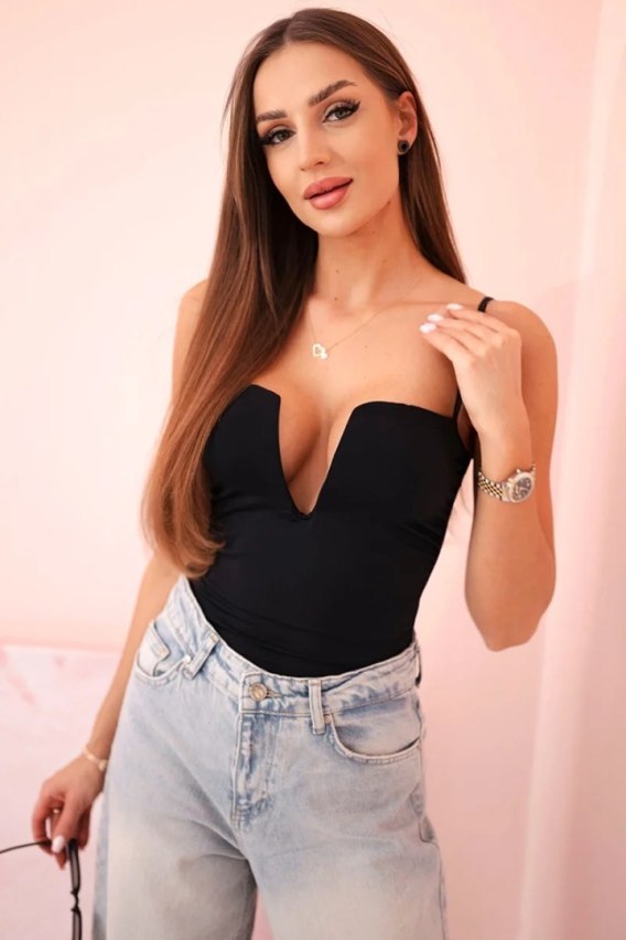Bluzka body damska na ramiączka z marszczeniem i dekoltem V czarna