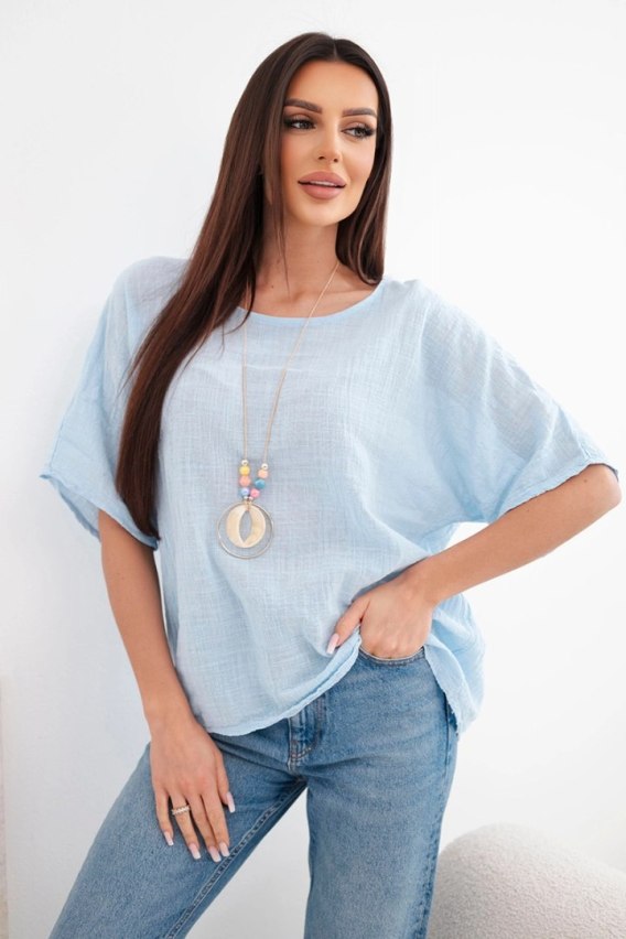 Niebieska bluzka bawełniana oversize – błękitny t-shirt z krótkim rękawem