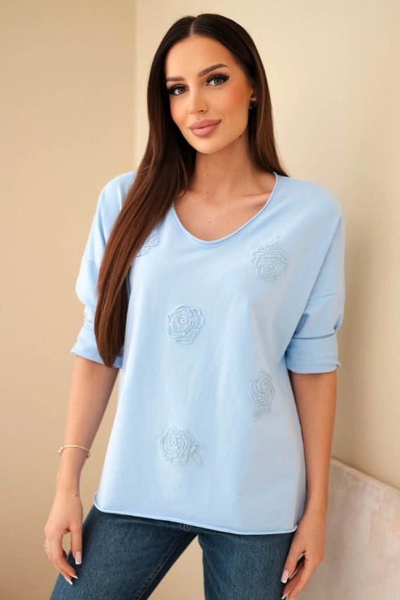 Niebieska bluzka bawełniana z haftowanymi kwiatami – stylowe dopełnienie Twojej garderoby