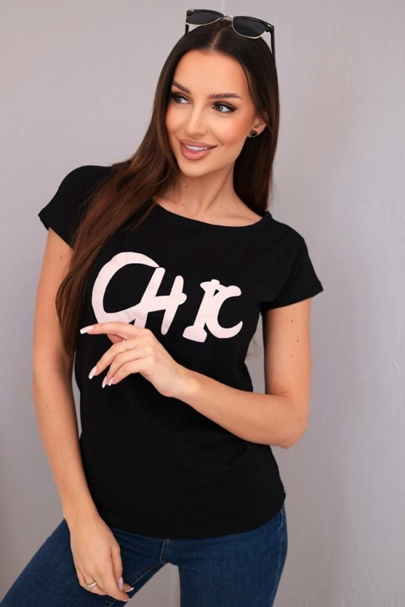 Bluzka damska bawełniana z nadrukiem CHIC czarna – Twoja baza w stylu smart-casual