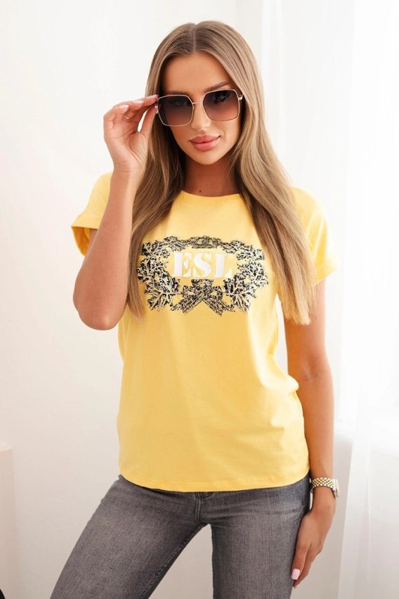 Żółta bluzka damska bawełniana z ozdobnym nadrukiem – słoneczna energia w Twojej szafie