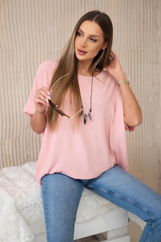 Bluzka oversize z wisiorkiem to połączenie luzu i subtelnej elegancji. Wykonana z wygodnego i miękkiego materiału, ta bluzka zapewnia wyjątkowy komfort noszenia. Jej oversizeowy krój dodaje swobody ruchom, podczas gdy wisiorek umieszczony na dekolcie dodaje jej delikatnego uroku i wyrazistości. Doskonała na codzienne wyjścia czy spotkania ze znajomymi, ta bluzka pozwoli Ci poczuć się wyjątkowo i swobodnie, będąc jednocześnie modnym dodatkiem do Twojej garderoby. Rozmiar jest uniwersalny i będzie odpowiedni dla Pań noszących rozmiar S, M lub L.