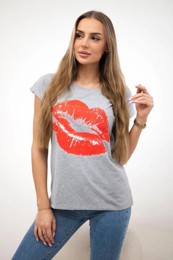 Bluzka z nadrukiem ust szara