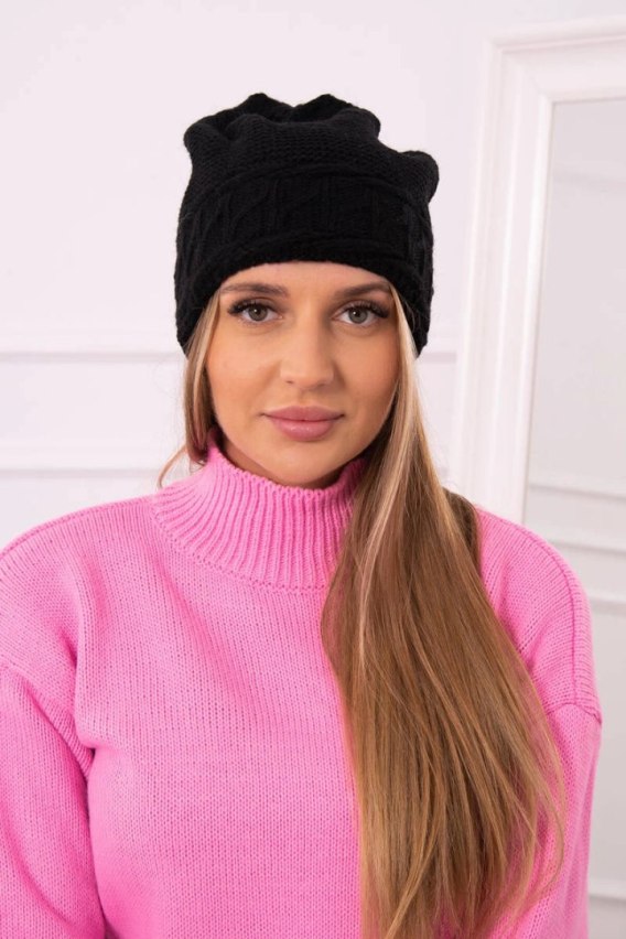 Klasyczna czarna czapka damska o miękkim splocie i ponadczasowym fasonie