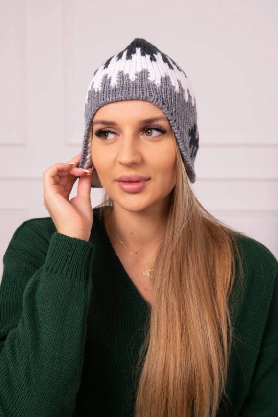 Czapka damska Nikol K405 grafitowy+biały+ciemny szary