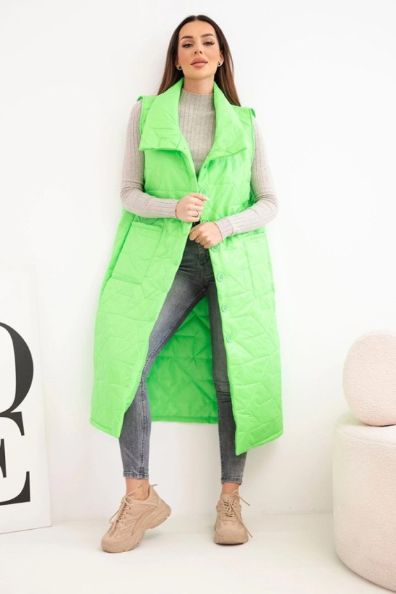 Kamizelka damska pikowana długa z kieszeniami i stójką zielony neon