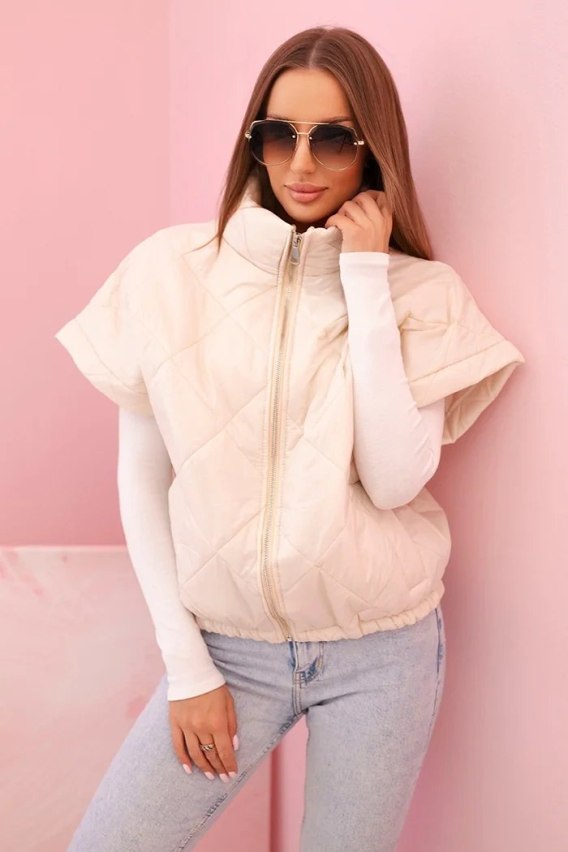 Kamizelka damska pikowana z krótkim rękawem i stójką jasno beżowa