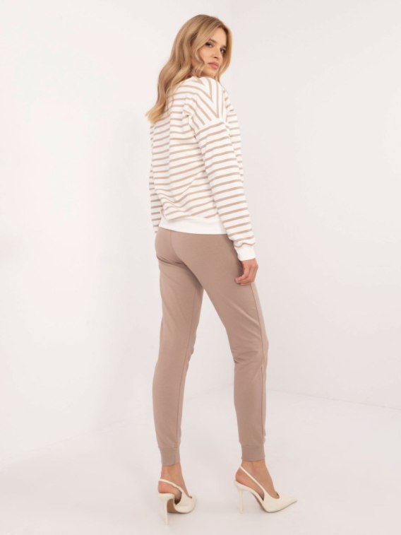 Wymiary kompletu w rozmiarze S/M mierzone na płasko: szerokość pod pachami - 55 cm, długość bluzy - 62 cm, długość rękawa - 59 cm, szerokość spodni w pasie - 36 cm, długość spodni - 97 cm .