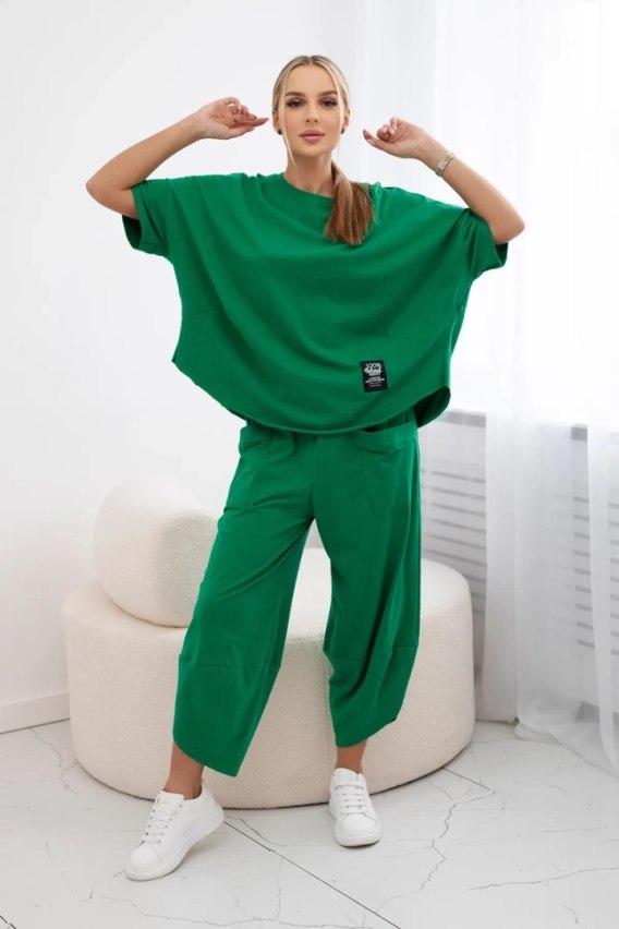 Zielony bawełniany komplet damski – bluza i spodnie w stylu loungewear