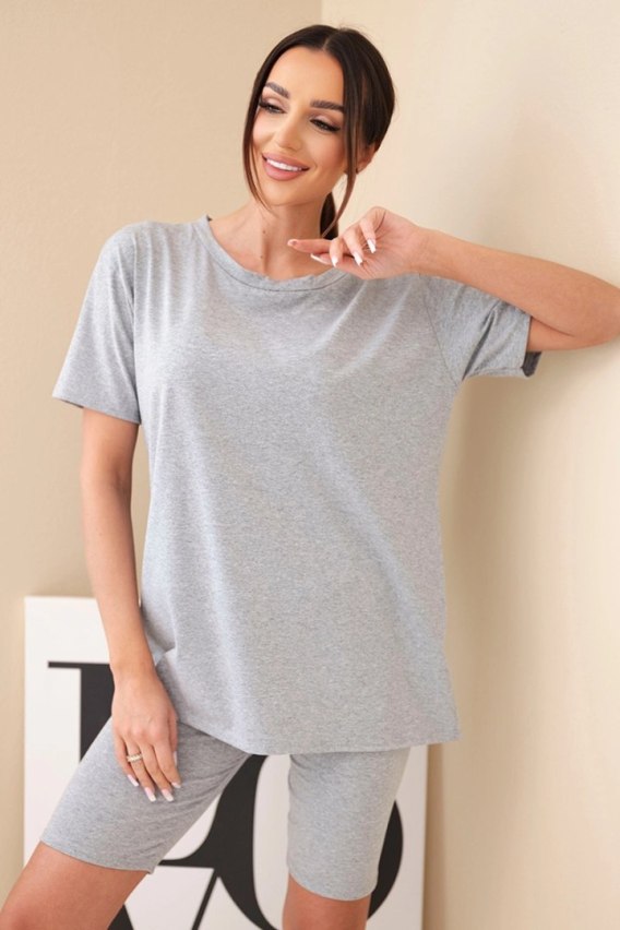 Szary komplet bawełniany damski – zestaw z t-shirtem i dopasowanymi kolarkami