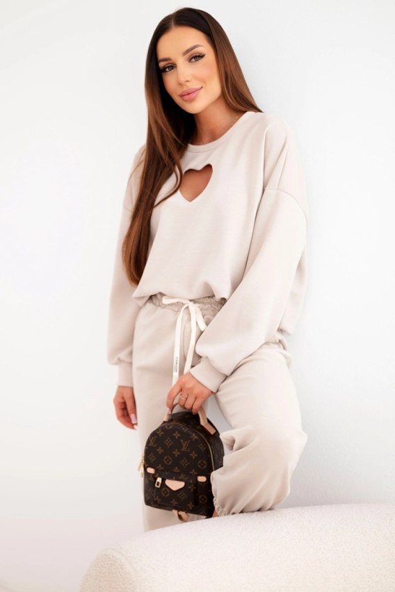 Beżowy komplet damski masełko z wycięciem w kształcie serca – luksusowy komfort