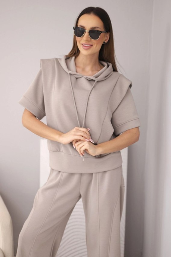 Komplet damski masełkowy z bluzą z kapturem i spodniami z wiązaniem fango