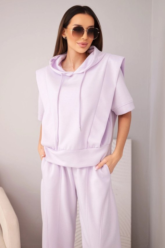 Komplet damski masełkowy bluza z kapturem i luźne spodnie z wiązaniem jasny fioletowy