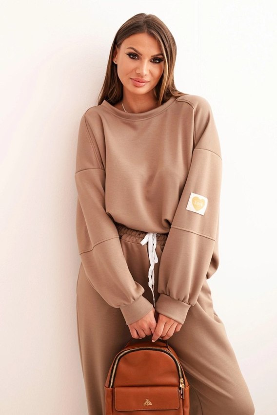 Komplet damski masełkowy z luźną bluzą i spodniami z napisem LOVE camelowy
