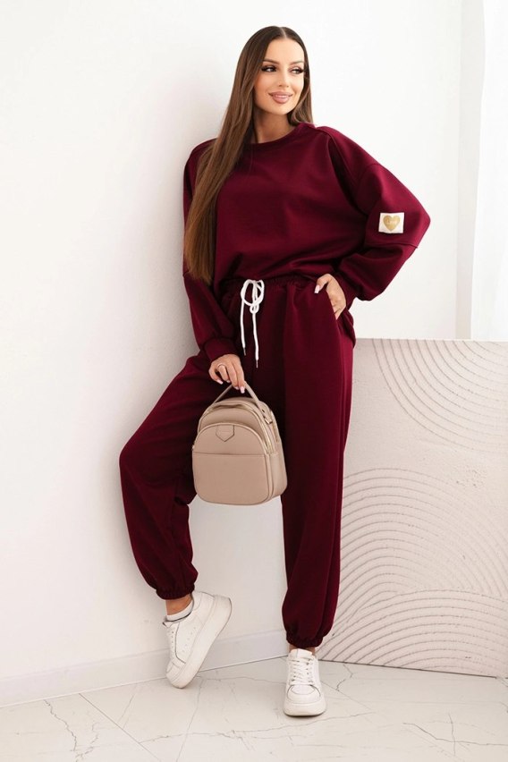 Komplet damski masełkowy z luźną bluzą i spodniami z napisem LOVE śliwkowy