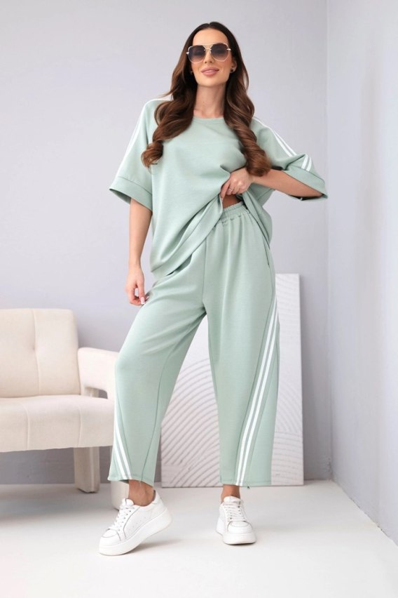 Ciemno-miętowy komplet damski masełkowy z wiskozy – luksusowy dres z lampasami