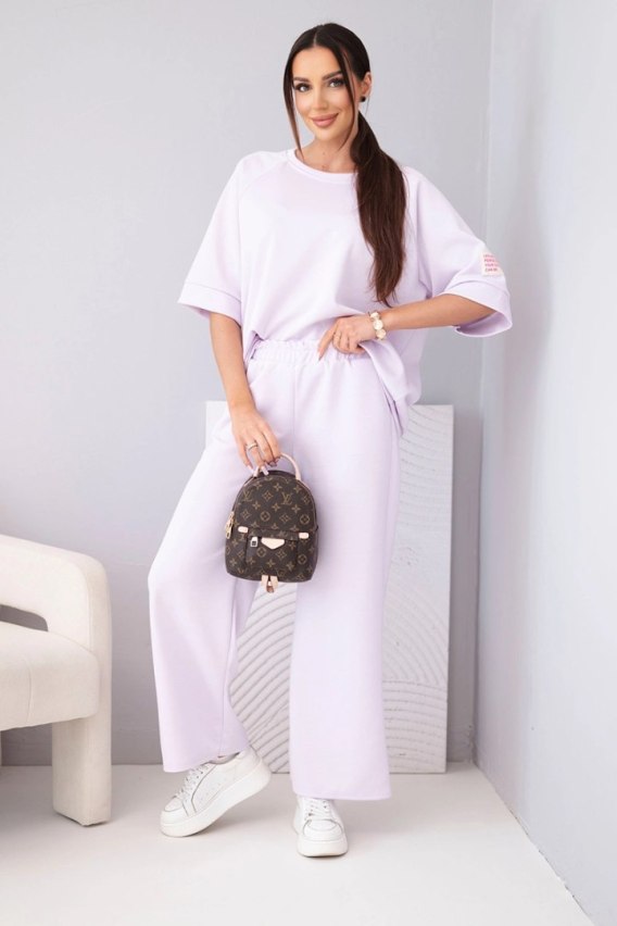 Komplet damski masełkowy z wiskozy bluza i szerokie spodnie jasny fioletowy
