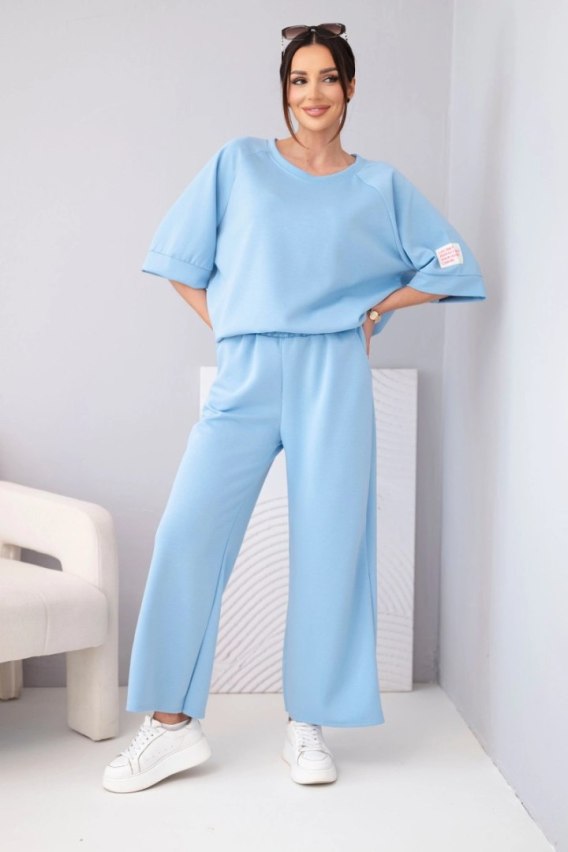 Wykonany z wysokiej jakości wiskozy z dodatkiem elastanu komplet jest niezwykle miękki, delikatny dla skóry i przyjemny w noszeniu. Bluza o swobodnym kroju świetnie układa się na sylwetce, a spodnie z szeroką nogawką nadają stylizacji nowoczesnego charakteru. Idealny wybór na co dzień, do pracy w luźniejszym wydaniu, na spacer czy podróż.