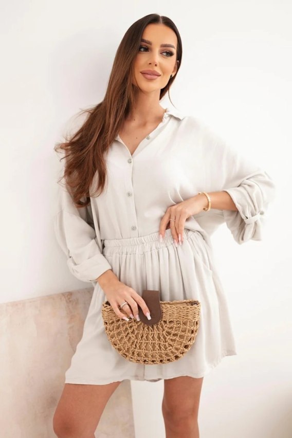 Beżowy komplet wiskozowy z koszulą i luźnymi spodenkami