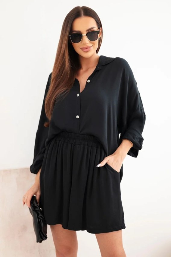 Komplet damski wiskozowy koszula z guzikami i luźne spodenki czarny