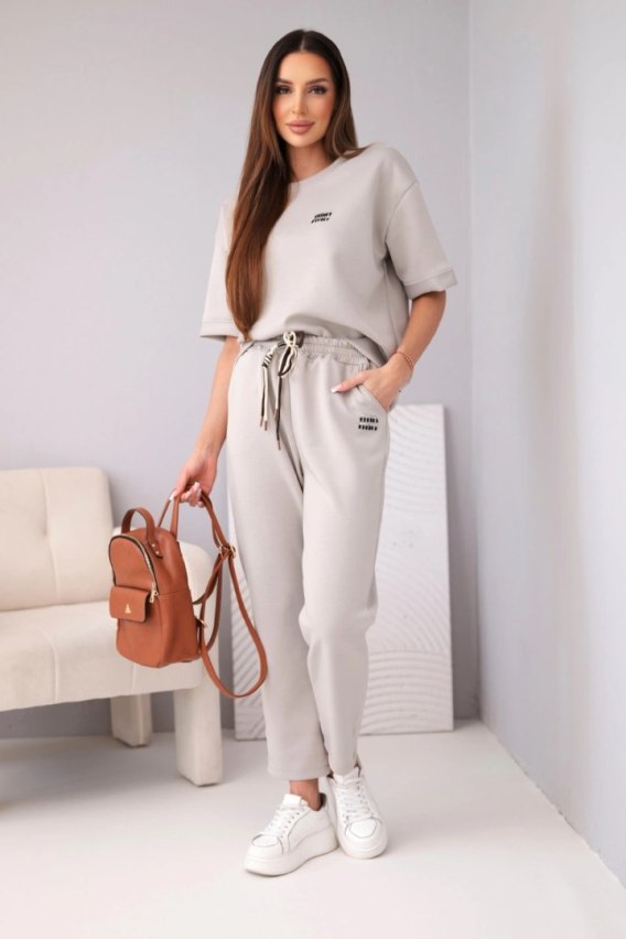 Komplet damski wiskozowy masełko z krótkim rękawem i spodniami z podwijaną nogawką ciemny beżowy