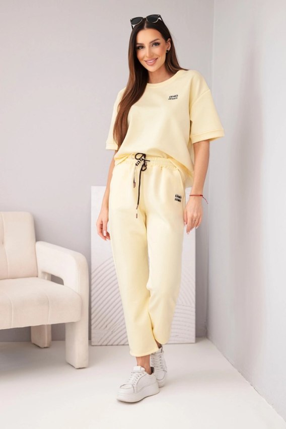 Komplet damski wiskozowy masełko z krótkim rękawem i spodniami z podwijaną nogawką żółty
