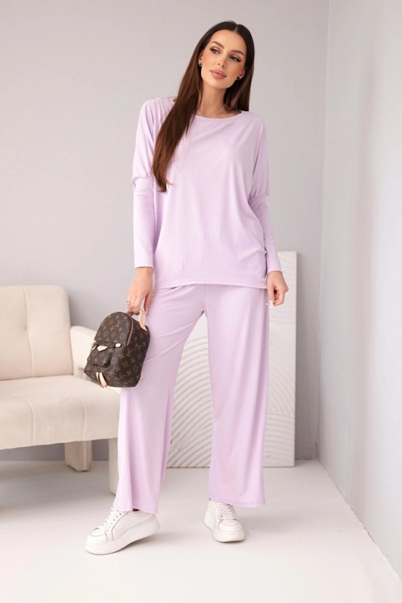 Komplet damski wiskozowy z luźną bluzką i spodniami jasno fioletowy