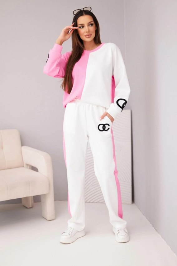 Komplet dresowy damski Masełko dwukolorowy z bluzą oversize i prostymi spodniami jasny różowy+biały