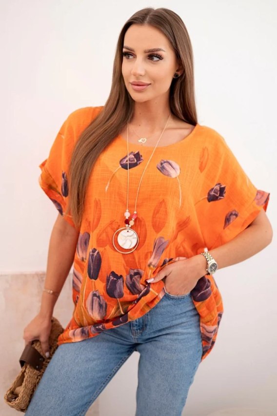 Koszula damska bawełniana z kwiatowym wzorem pomarańczowa
