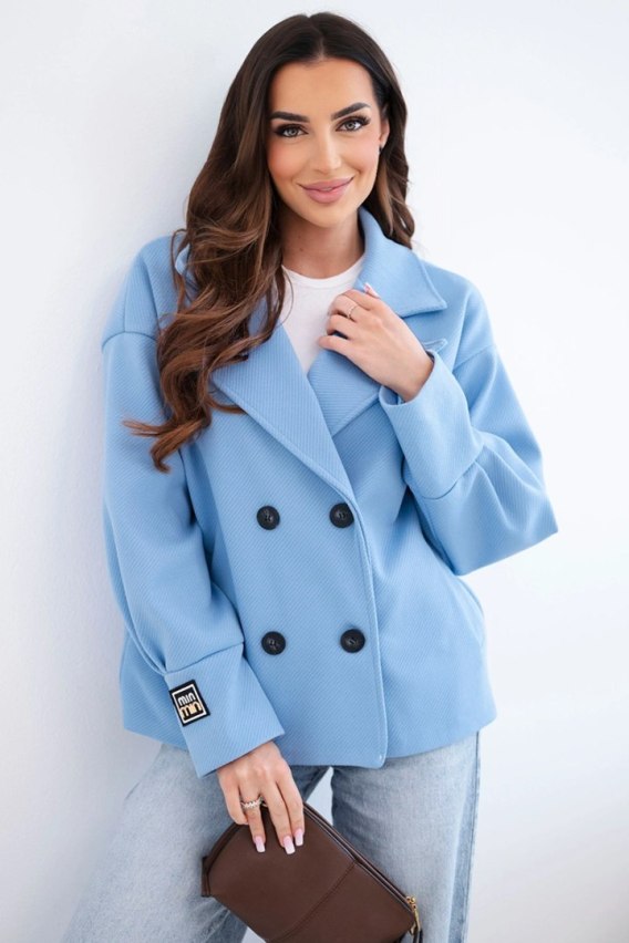 Niebieska krótka kurtka damska dwurzędowa z kołnierzem – energetyczny akcent Twojej szafy