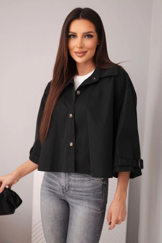 Czarna kurtka damska wiosenna bawełniana – minimalistyczna klasyka z kołnierzem