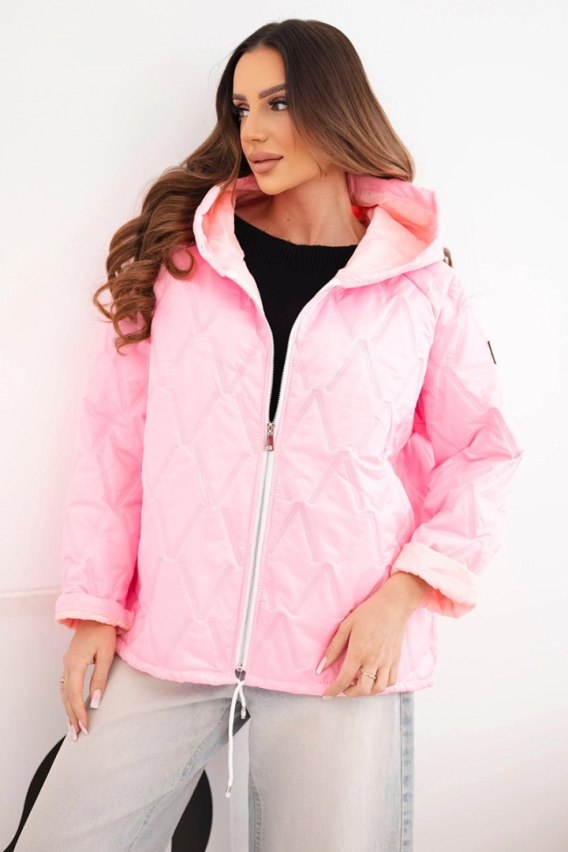 Kurtka damska wiosenna pikowana z kapturem i zamkiem cukierkow róż