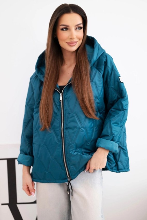 Kurtka damska wiosenna pikowana z kapturem i zamkiem morska