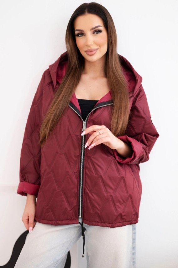 Kurtka damska wiosenna pikowana z kapturem i zamkiem śliwkowa