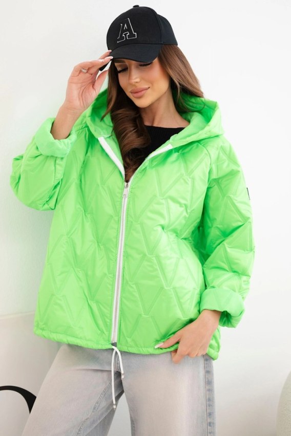 Kurtka damska wiosenna pikowana z kapturem i zamkiem zielony neon