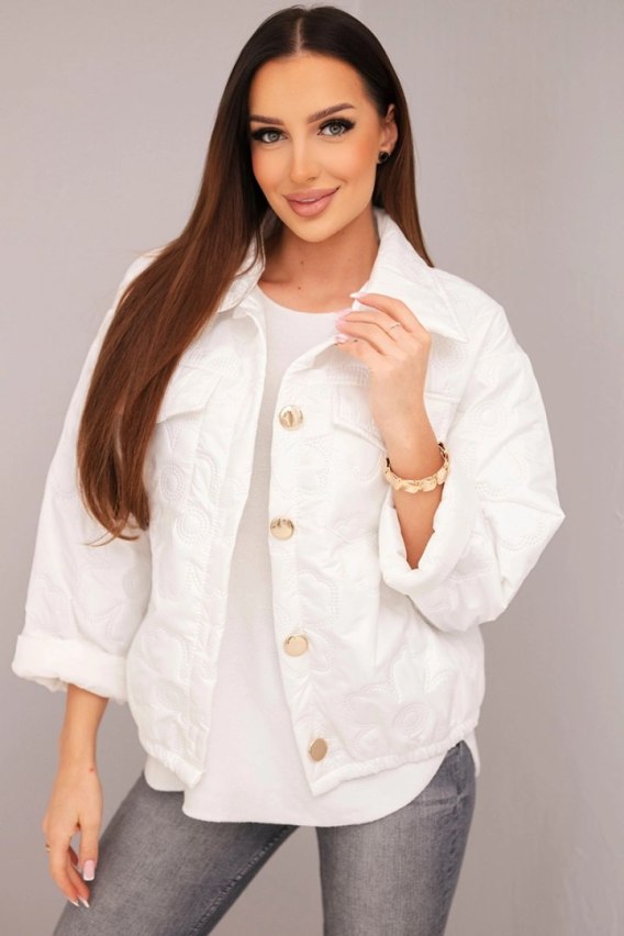 Kurtka damska wiosenna pikowana z kwiatowym wzorem biała