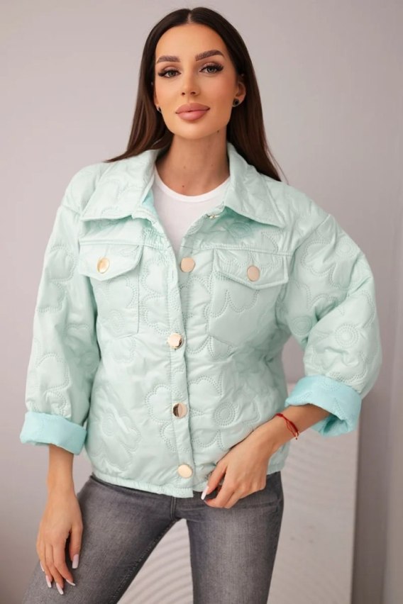 Jasno-miętowa kurtka wiosenna pikowana w kwiatowy wzór