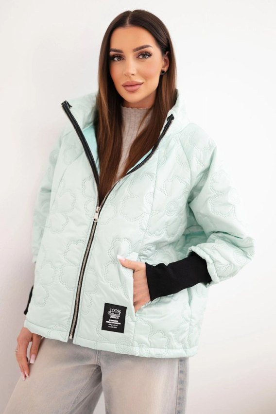 Kurtka damska wiosenna pikowana z ozdobnym tłoczeniem i zamkiem miętowa