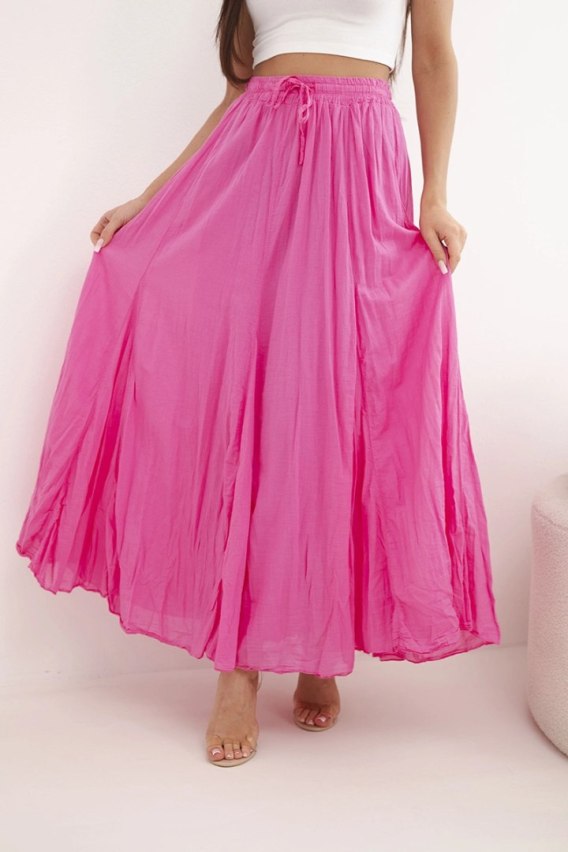Spódnica damska maxi bawełniana z gumką w pasie różowa