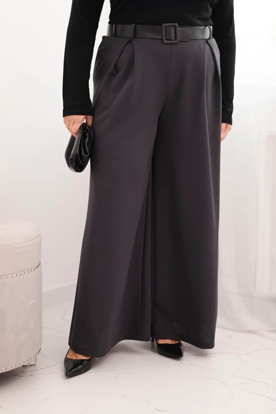 Spodnie damskie Plus Size z szeroką nogawką i paskiem grafitowe