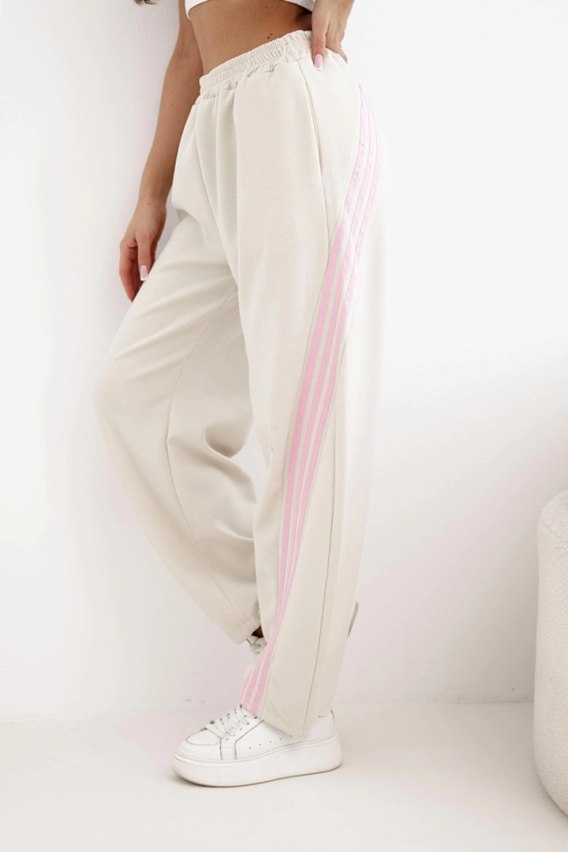 Spodnie damskie masełkowe z wiskozy z lampasem beżowe