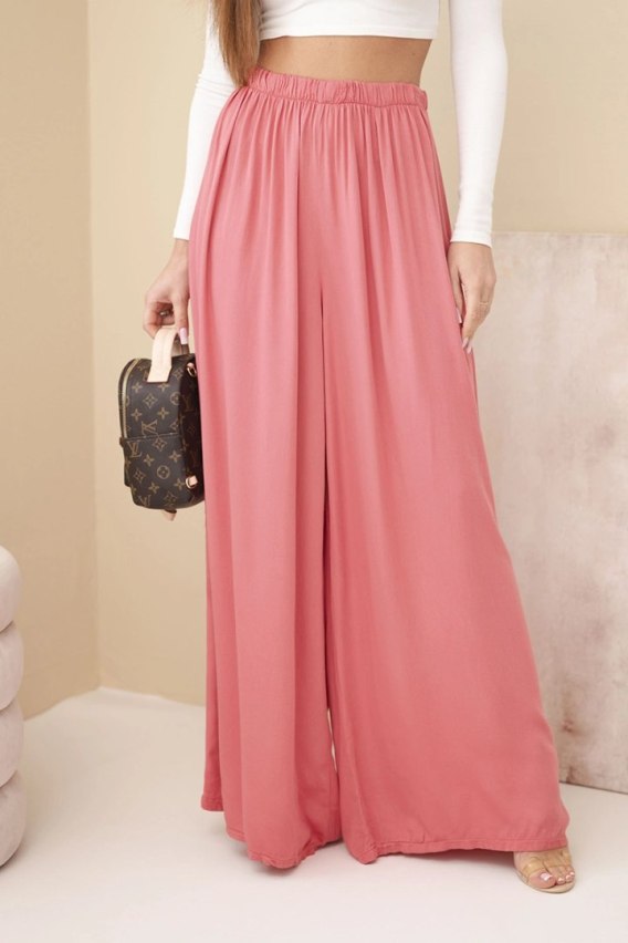 Spodnie damskie wiskozowe szerokie z gumką w pasie – malinowa energia w Twojej szafie