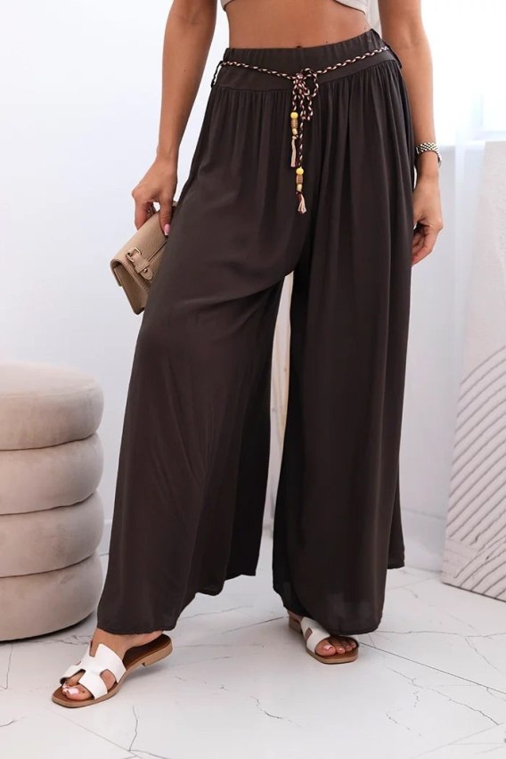Spodnie damskie z wiskozy z szeroką nogawką brązowe