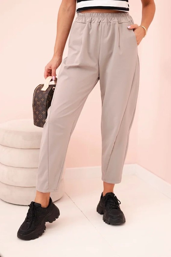 Eleganckie spodnie damskie fango z kieszeniami z dzianiny Summer Punto
