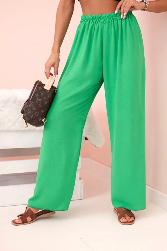 Spodnie z wiskozą z szeroką nogawką to wyjątkowy element garderoby, który łączy w sobie komfort i elegancję. Wykonane z lekkiego i przewiewnego materiału wiskozy, te spodnie gwarantują nie tylko swobodę ruchów, ale także zapewniają uczucie lekkości i świeżości przez cały dzień. Szeroka nogawka nadaje spodniom charakterystyczny, luźny fason, który jest zarówno modny, jak i wygodny. Ten element sprawia, że spodnie prezentują się niezwykle stylowo i efektownie, dodając oryginalności każdej stylizacji. Uniwersalny design spodni z szeroką nogawką sprawia, że doskonale pasują one do różnych okazji i stylizacji. Możesz nosić je zarówno do codziennych, luzackich outfitów, jak i do bardziej eleganckich zestawów na spotkania biznesowe czy wieczorne wyjścia. Spodnie z wiskozy z szeroką nogawką to idealny wybór dla kobiet, które cenią sobie wygodę i styl. Dzięki swojemu uniwersalnemu designowi i wysokiej jakości wykonania, te spodnie stanowią niezastąpiony element garderoby, który świetnie uzupełni każdą kolekcję ubrań. Rozmiar jest uniwersalny i będzie odpowiedni dla Pań noszących rozmiar S, M lub L.