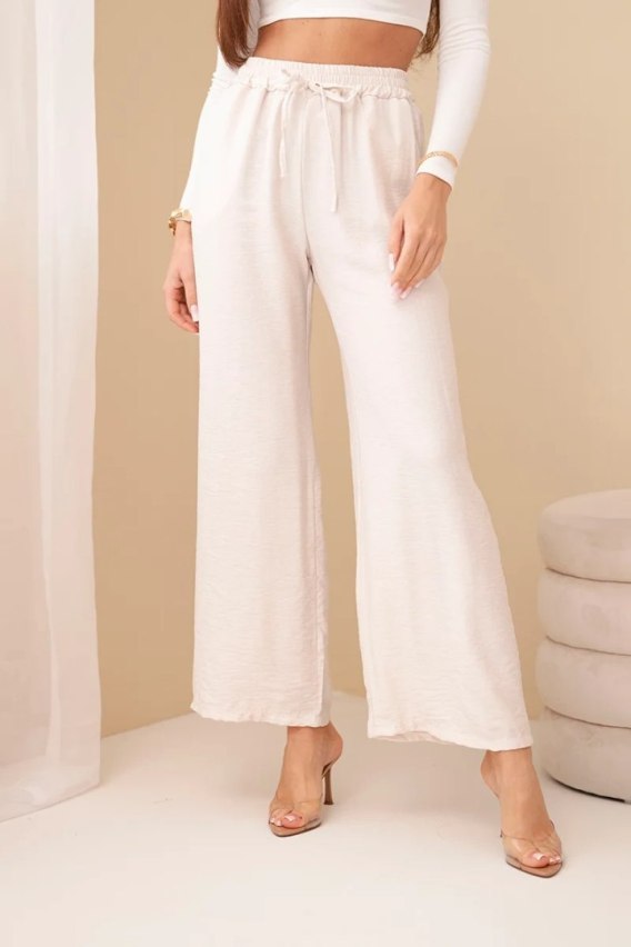 Beżowe spodnie z szeroką nogawką z przewiewnej wiskozy