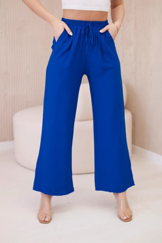 Spodnie z wiskozy z szeroką nogawką chabrowe