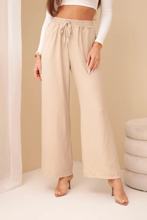 Spodnie z wiskozy z szeroką nogawką to wyjątkowy element garderoby, który łączy w sobie komfort i elegancję. Wykonane z lekkiego i przewiewnego materiału wiskozy, te spodnie gwarantują nie tylko swobodę ruchów, ale także zapewniają uczucie lekkości i świeżości przez cały dzień. Szeroka nogawka nadaje spodniom charakterystyczny, luźny fason, który jest zarówno modny, jak i wygodny. Ten element sprawia, że spodnie prezentują się niezwykle stylowo i efektownie, dodając oryginalności każdej stylizacji. Uniwersalny design spodni z szeroką nogawką sprawia, że doskonale pasują one do różnych okazji i stylizacji. Możesz nosić je zarówno do codziennych, luzackich outfitów, jak i do bardziej eleganckich zestawów na spotkania biznesowe czy wieczorne wyjścia. Spodnie z wiskozy z szeroką nogawką to idealny wybór dla kobiet, które cenią sobie wygodę i styl. Dzięki swojemu uniwersalnemu designowi i wysokiej jakości wykonania, te spodnie stanowią niezastąpiony element garderoby, który świetnie uzupełni każdą kolekcję ubrań. Rozmiar jest uniwersalny i będzie odpowiedni dla Pań noszących rozmiar S, M lub L.