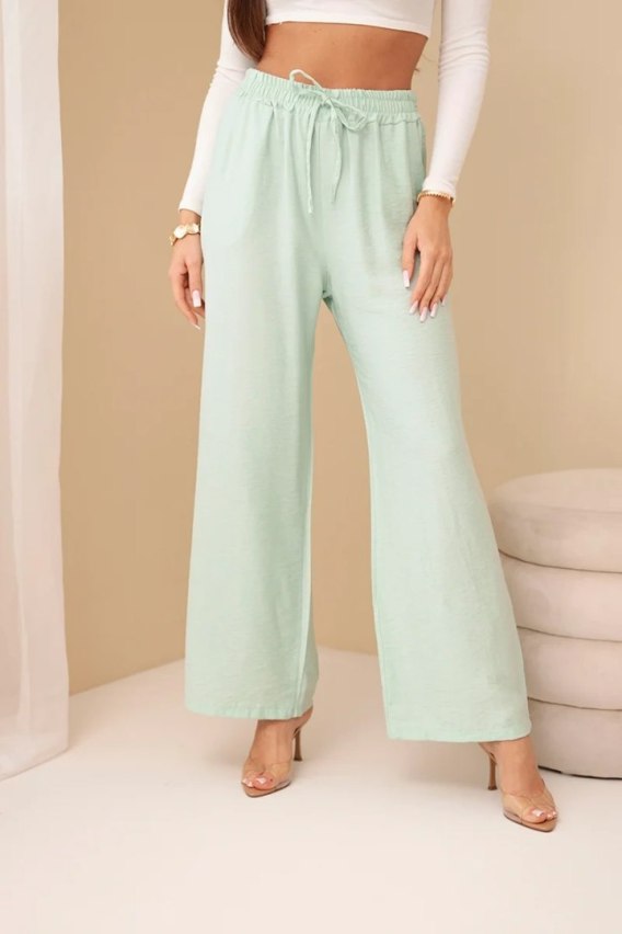 Spodnie z wiskozy z szeroką nogawką to wyjątkowy element garderoby, który łączy w sobie komfort i elegancję. Wykonane z lekkiego i przewiewnego materiału wiskozy, te spodnie gwarantują nie tylko swobodę ruchów, ale także zapewniają uczucie lekkości i świeżości przez cały dzień. Szeroka nogawka nadaje spodniom charakterystyczny, luźny fason, który jest zarówno modny, jak i wygodny. Ten element sprawia, że spodnie prezentują się niezwykle stylowo i efektownie, dodając oryginalności każdej stylizacji. Uniwersalny design spodni z szeroką nogawką sprawia, że doskonale pasują one do różnych okazji i stylizacji. Możesz nosić je zarówno do codziennych, luzackich outfitów, jak i do bardziej eleganckich zestawów na spotkania biznesowe czy wieczorne wyjścia. Spodnie z wiskozy z szeroką nogawką to idealny wybór dla kobiet, które cenią sobie wygodę i styl. Dzięki swojemu uniwersalnemu designowi i wysokiej jakości wykonania, te spodnie stanowią niezastąpiony element garderoby, który świetnie uzupełni każdą kolekcję ubrań. Rozmiar jest uniwersalny i będzie odpowiedni dla Pań noszących rozmiar S, M lub L.